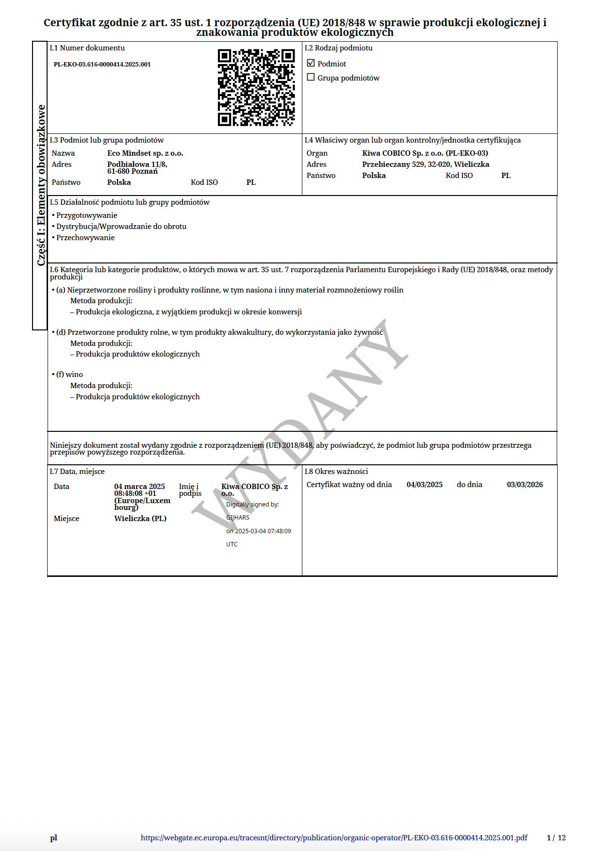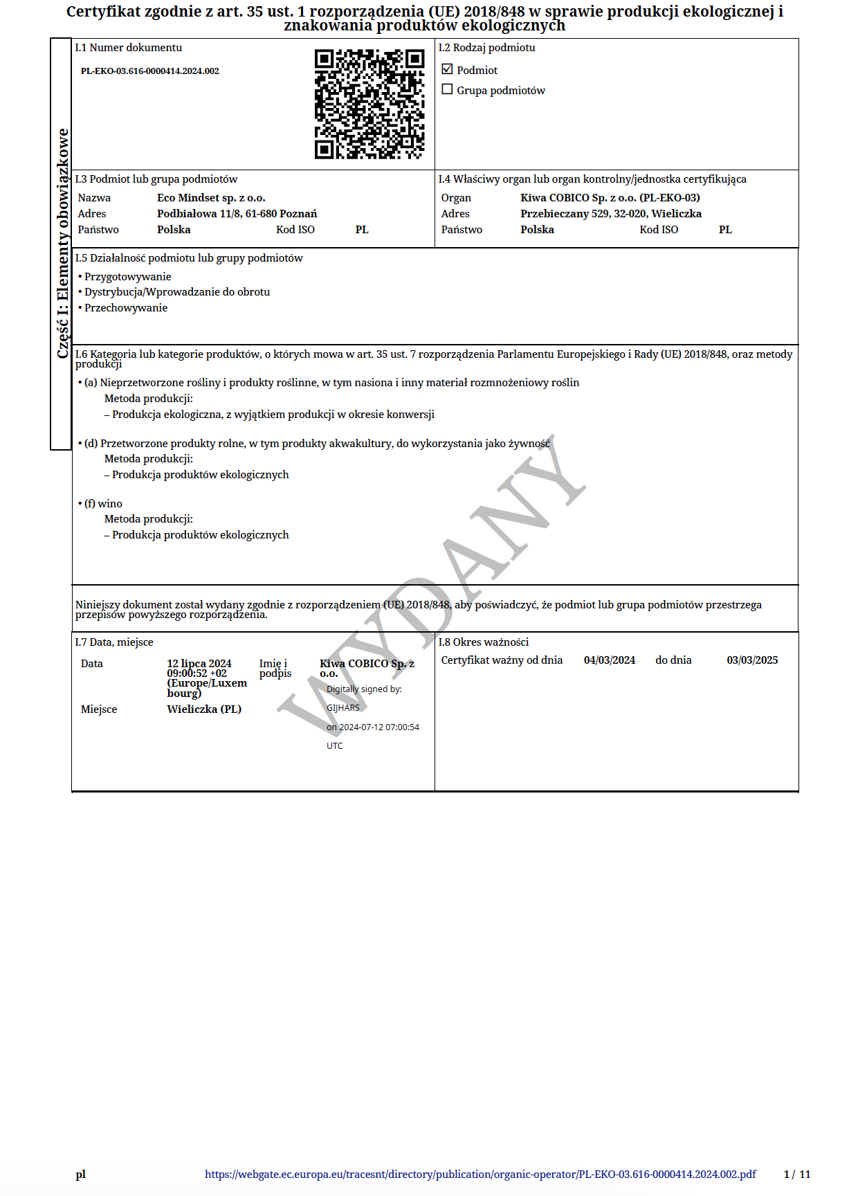 Certyfikat Ekologiczny